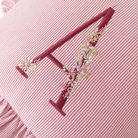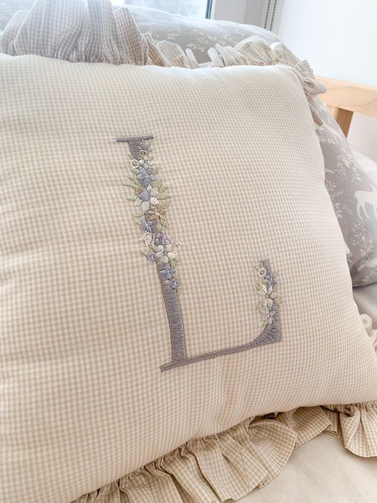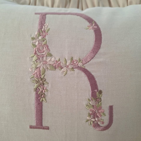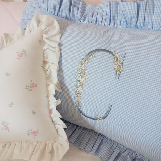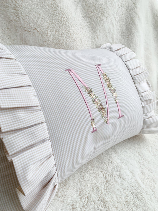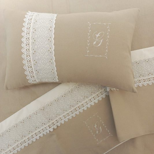 Cojín rectángulo con broderie e inicial - lino