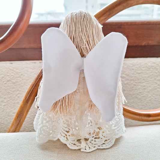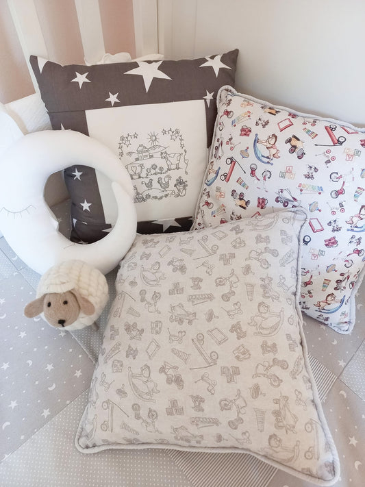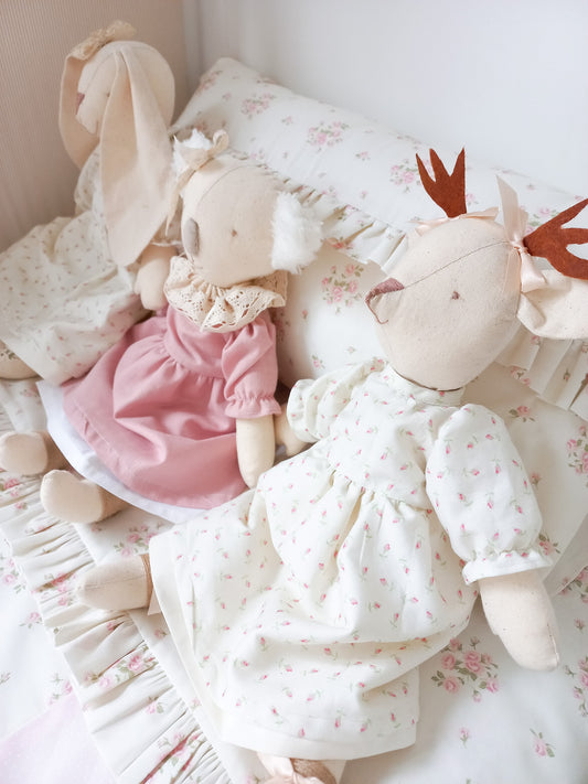 Banderín muñeco y figura con nombre - tela a elección (dos figuras a los lados)