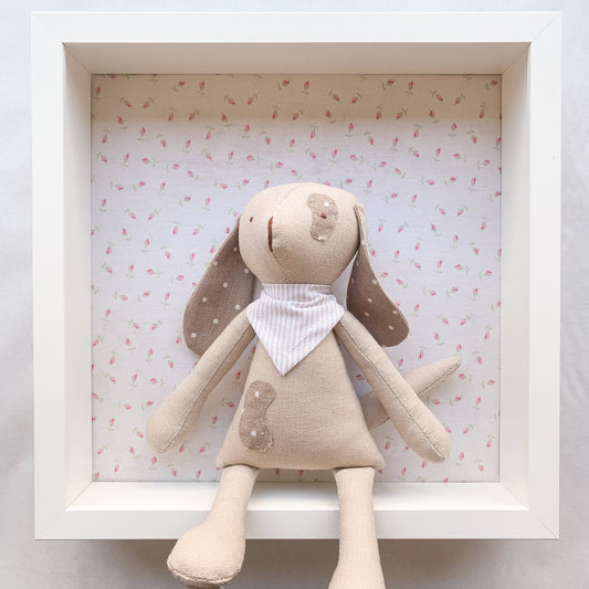 Cuadrito perrito - beige y botoncitos rosa