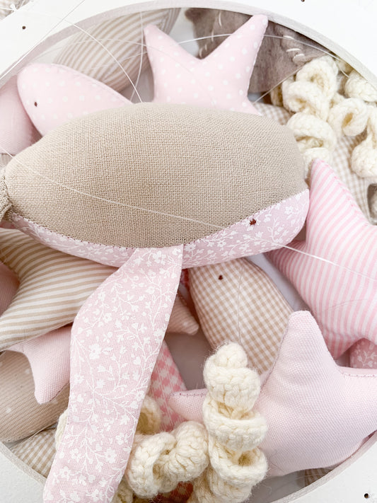 Móvil luna y estrellas - globos en rosa