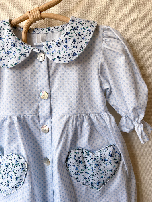 Delantal florcita celeste & celeste liso
