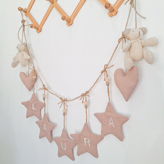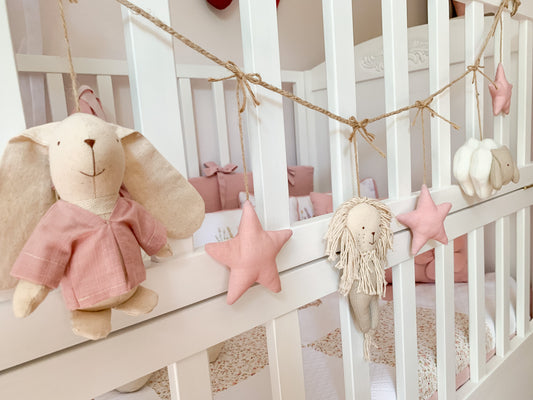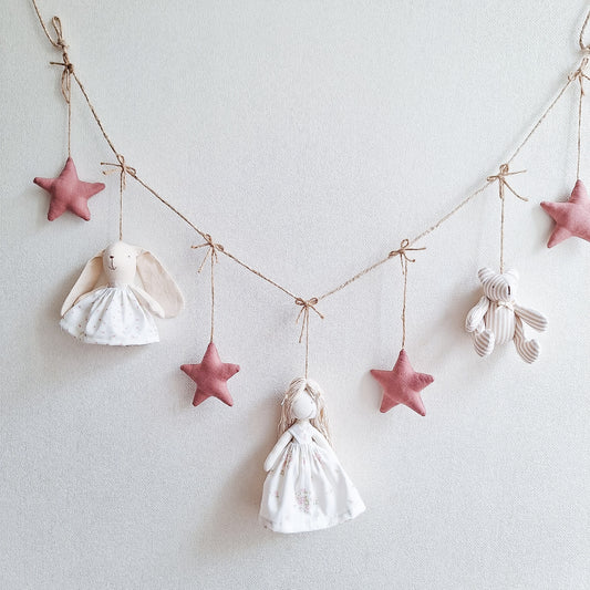 Guirnalda animales y muñeca - Estrellas lino frambuesa