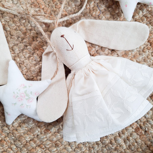 Guirnalda conejas - bordado y ramitos flores