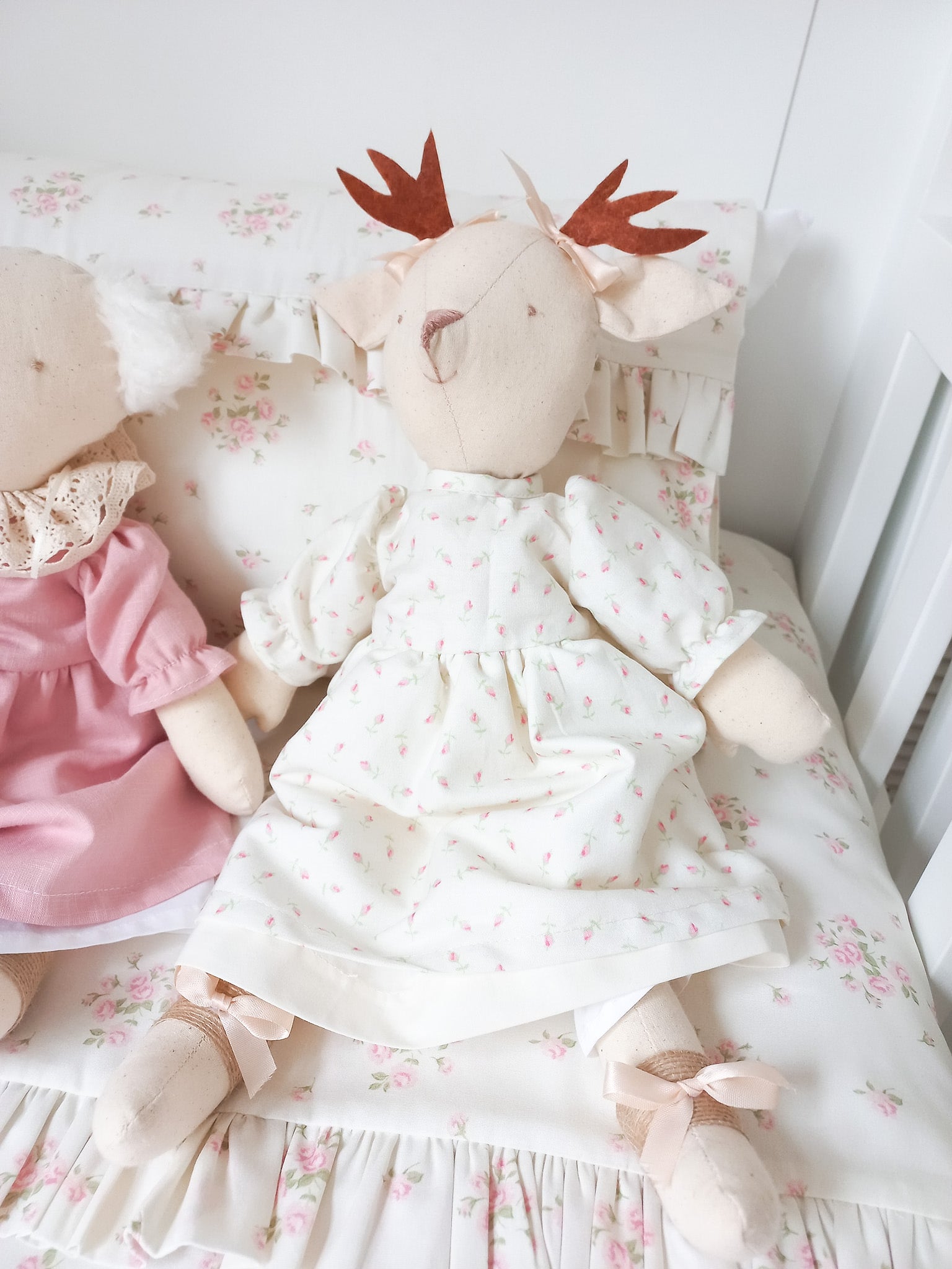 Muñeco Ciervo confeccionado en telas 100% algodón. Miden 38cm.