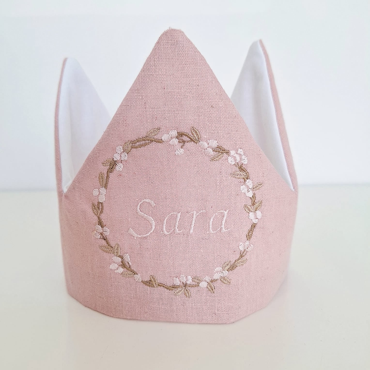 Corona de cumpleaños elasticada y numero o inicial bordada a elección. Puedes escribir tu preferencia en los comentarios al finalizar la compra o te pones en contacto con nosotras a través de INSTAGRAM o WHATSAPPP. También la puedes pedir en otros colores de tela.