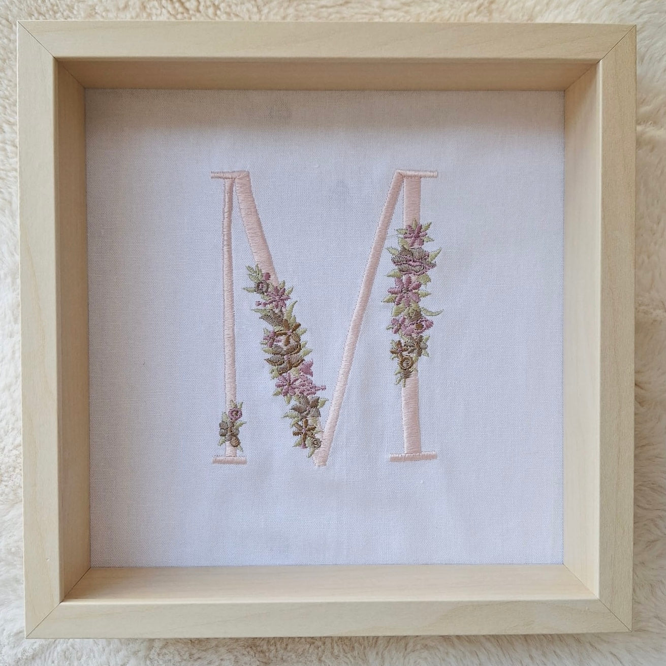 Cuadrito de madera lacada blanca 28x28cm aprox. telas de algodón / Lino. Infórmanos la inicial que quieres que bórdenos y los tonos
