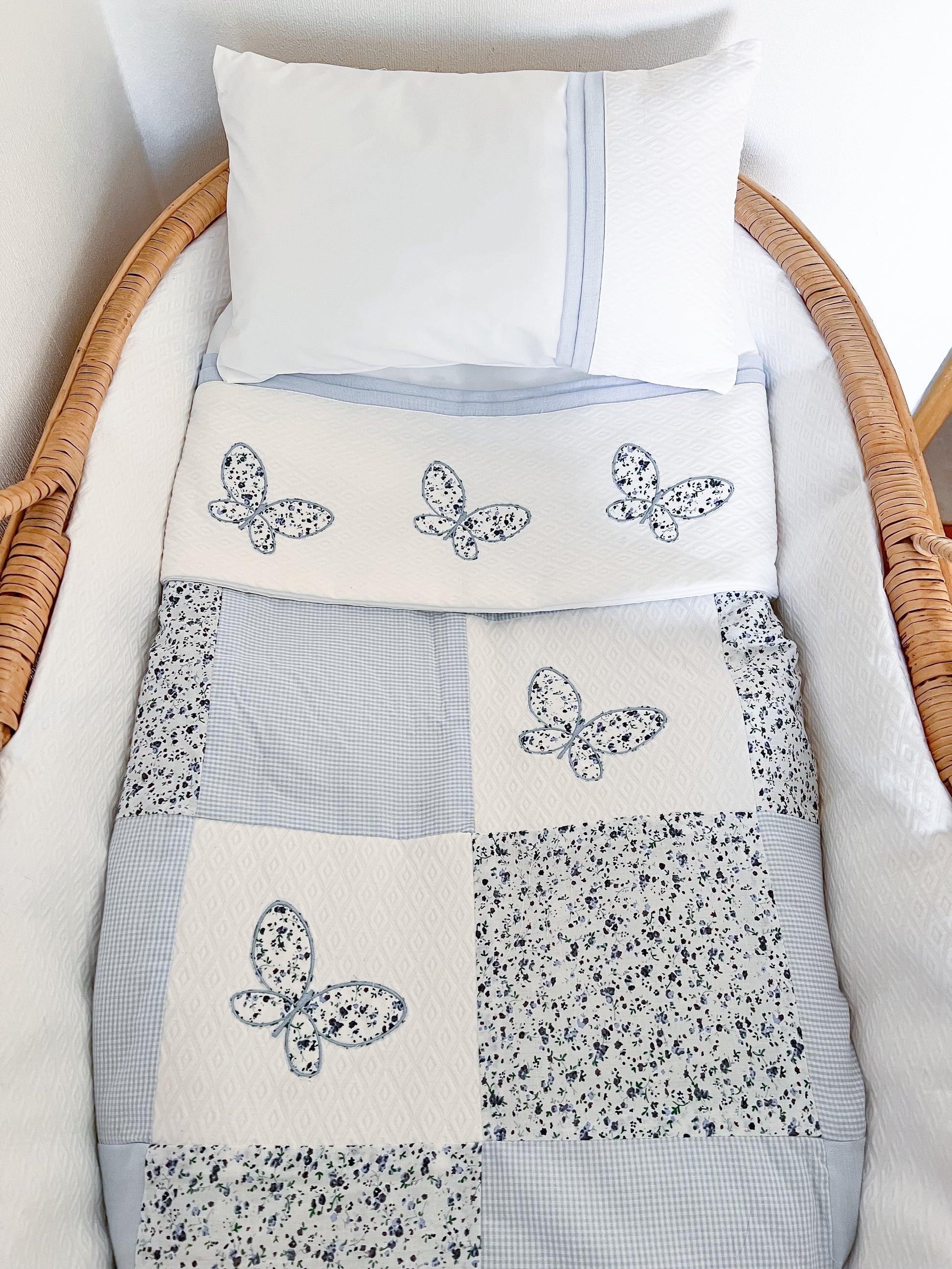 *Las fotos muestran un cubrecama para tamaño colecho, el diseño tiene pequeñas modificaciones al adecuarlo a otra medida de cuna.