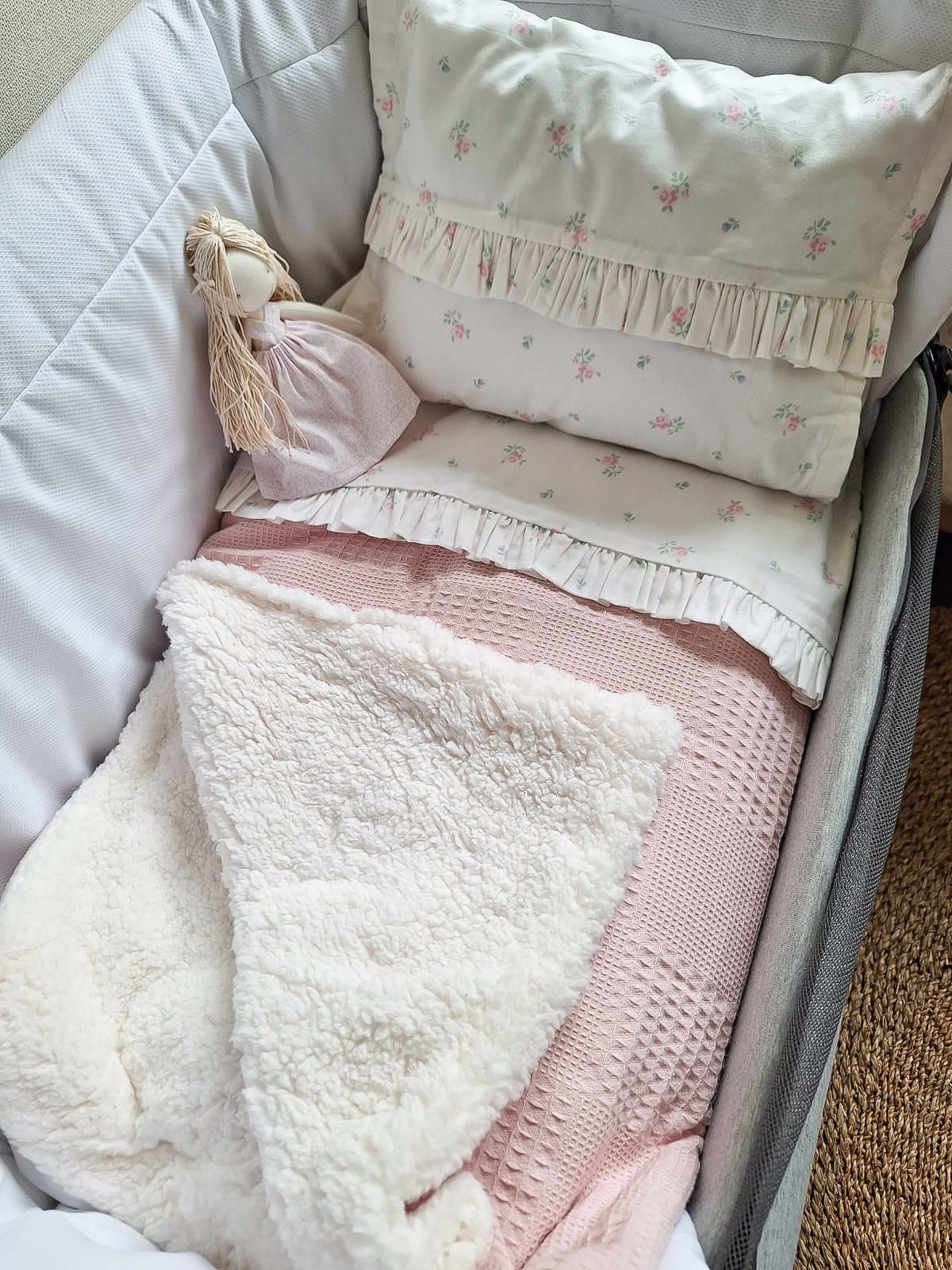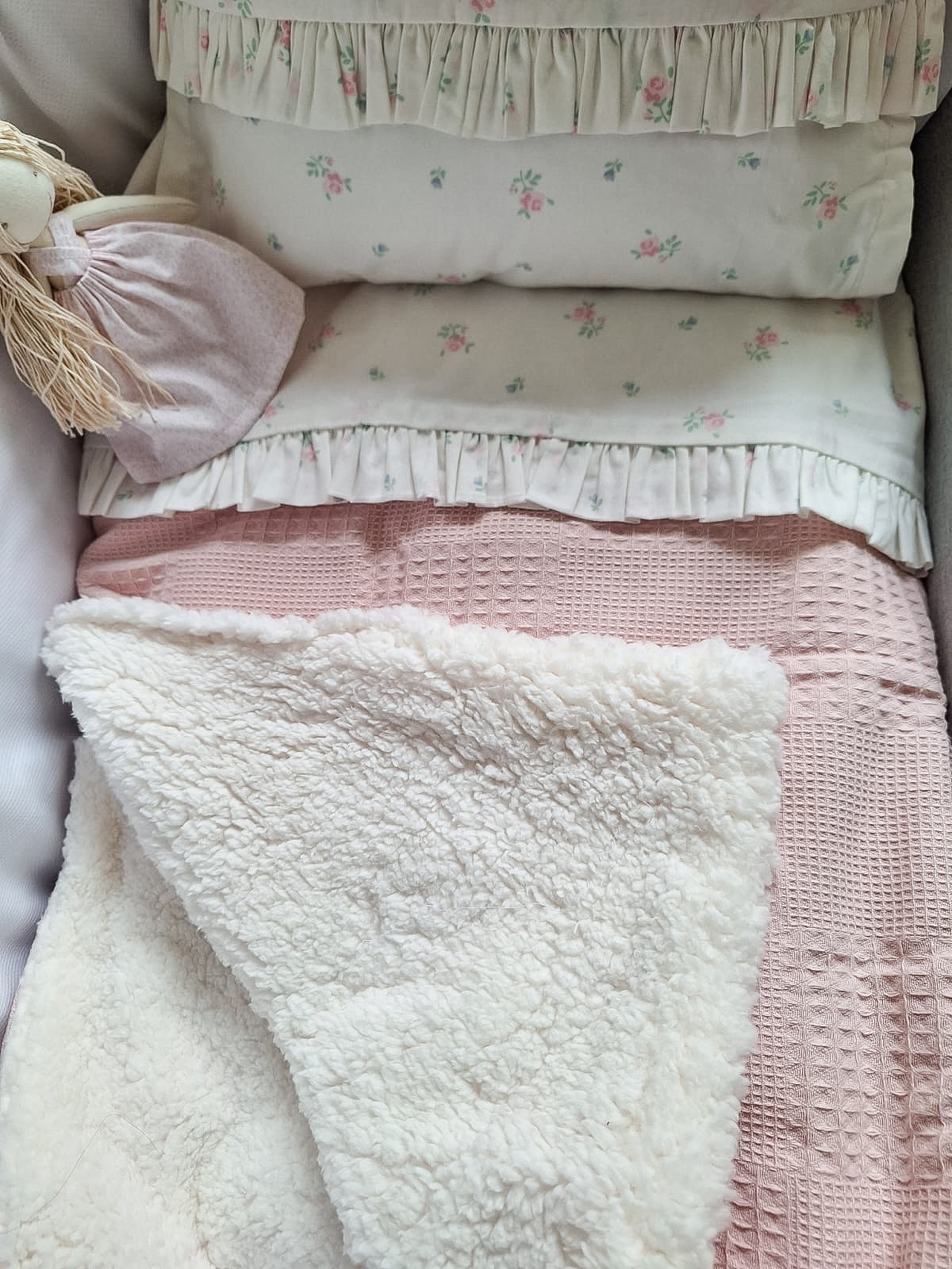 Cubrecama/ manta en tela panal 100% algodón forrada en tela corderito