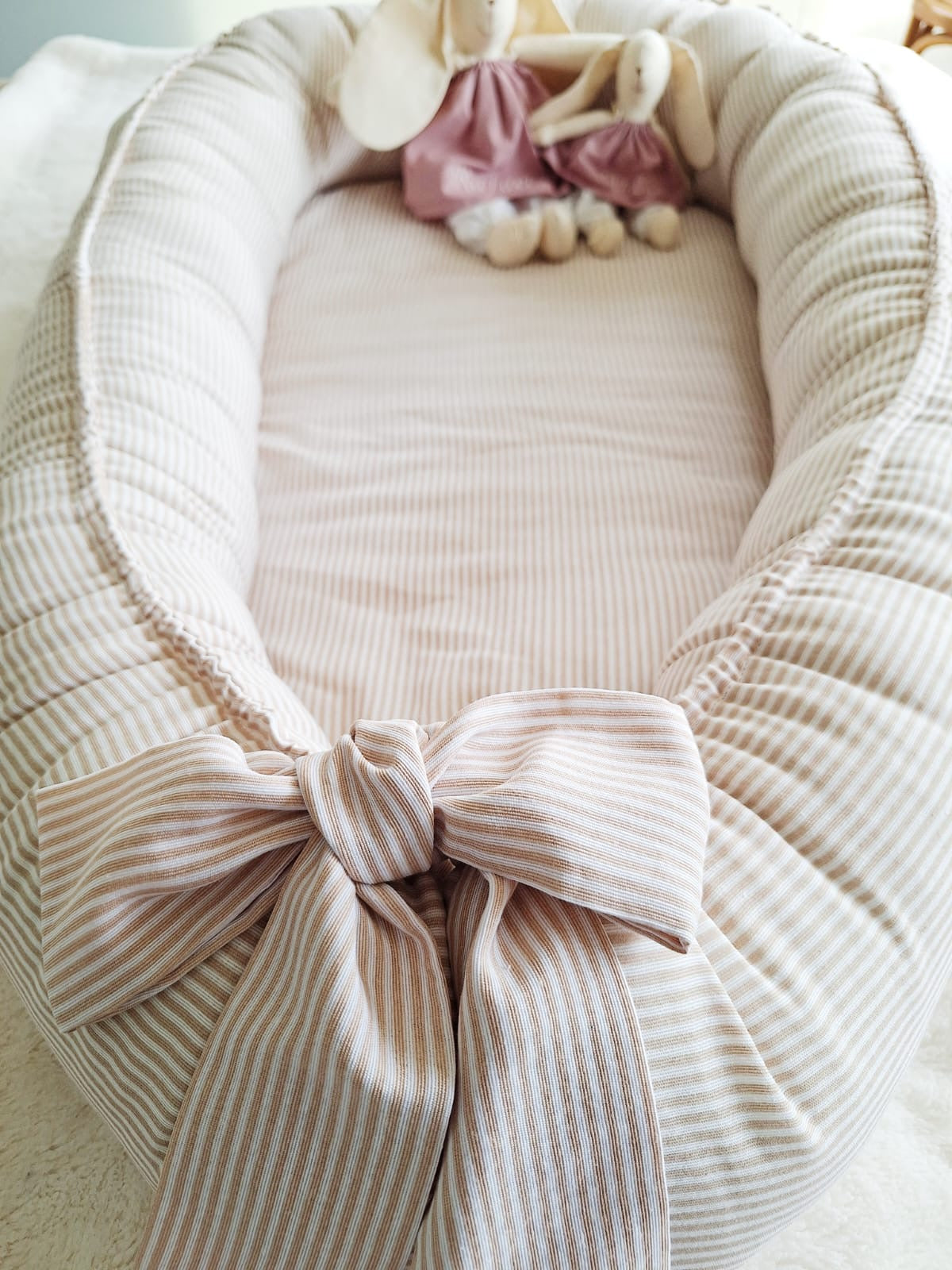 Cuna Nido confeccionada en tela 100% algodón a elección. Relleno en borde de algodón siliconado hipoalergénico. Incluye cojín. Ideales para usar desde recién nacido hasta los 12 meses. El área para acostar a la guagua mide 90 x 50