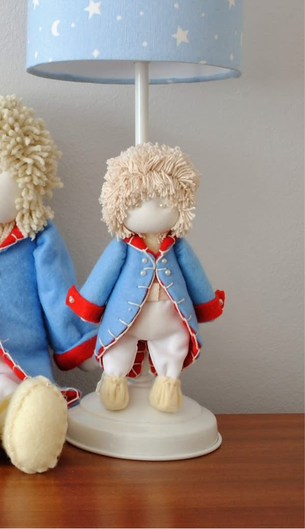 Muñeco con amarras para decorar la lámpara de apoyo que ya tengas. Compleméntalo con una pantalla a juego.