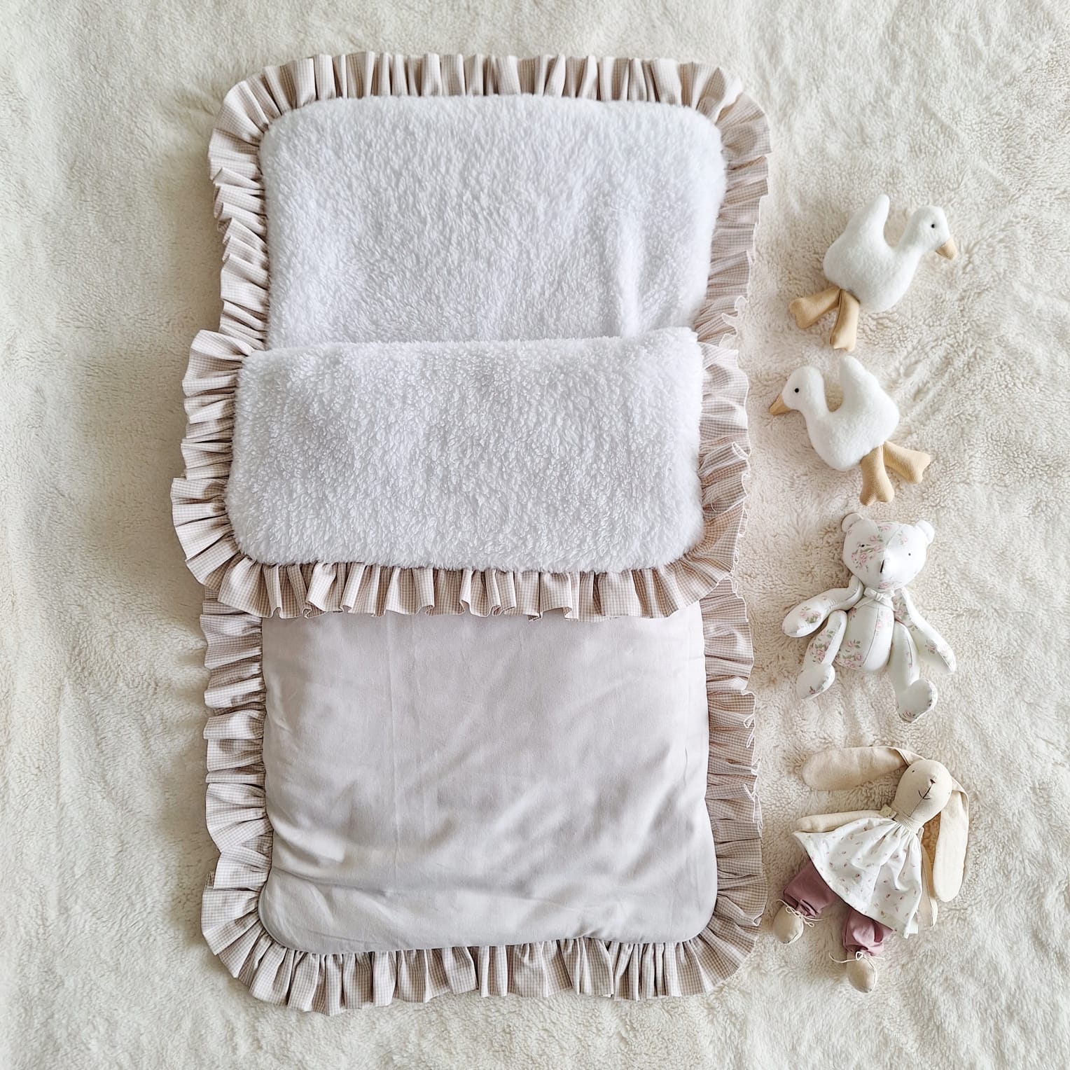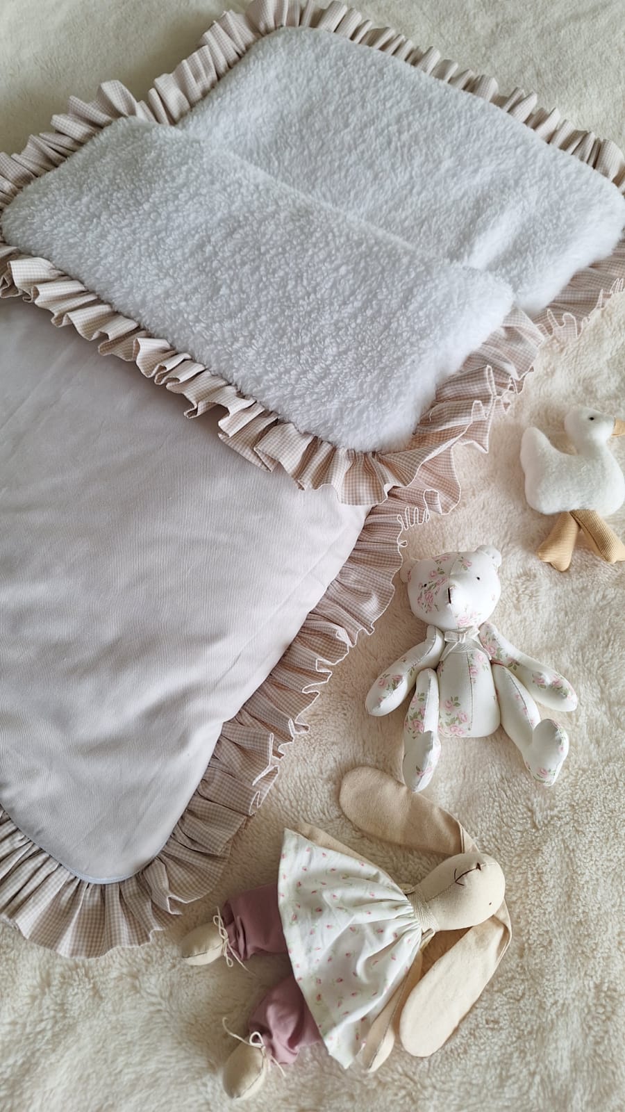 Saquito forrado en corderito con cierre. Vuelitos por todo el contorno