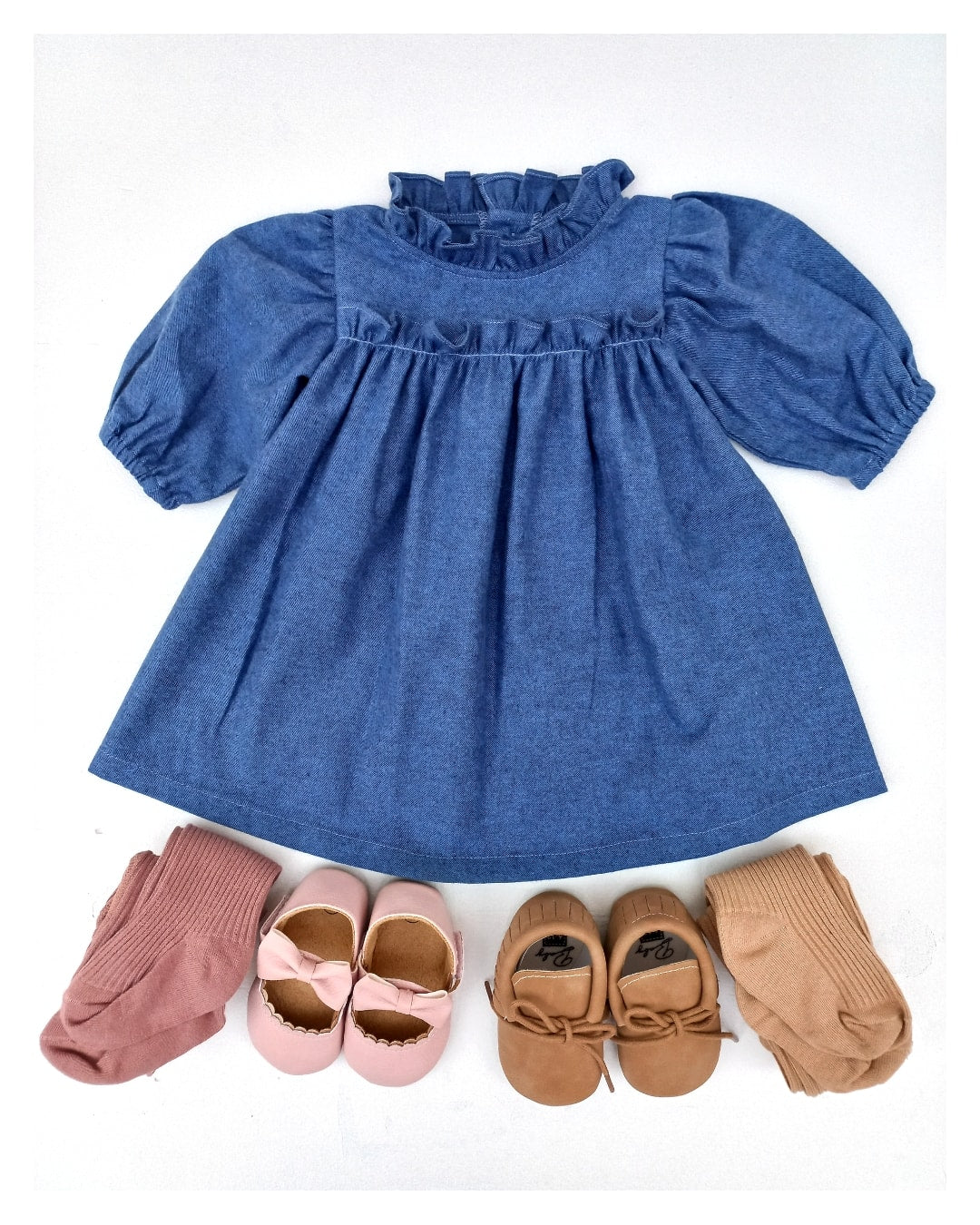 Vestido en tela algodón azul, perfecto para temporada otoño-invierno